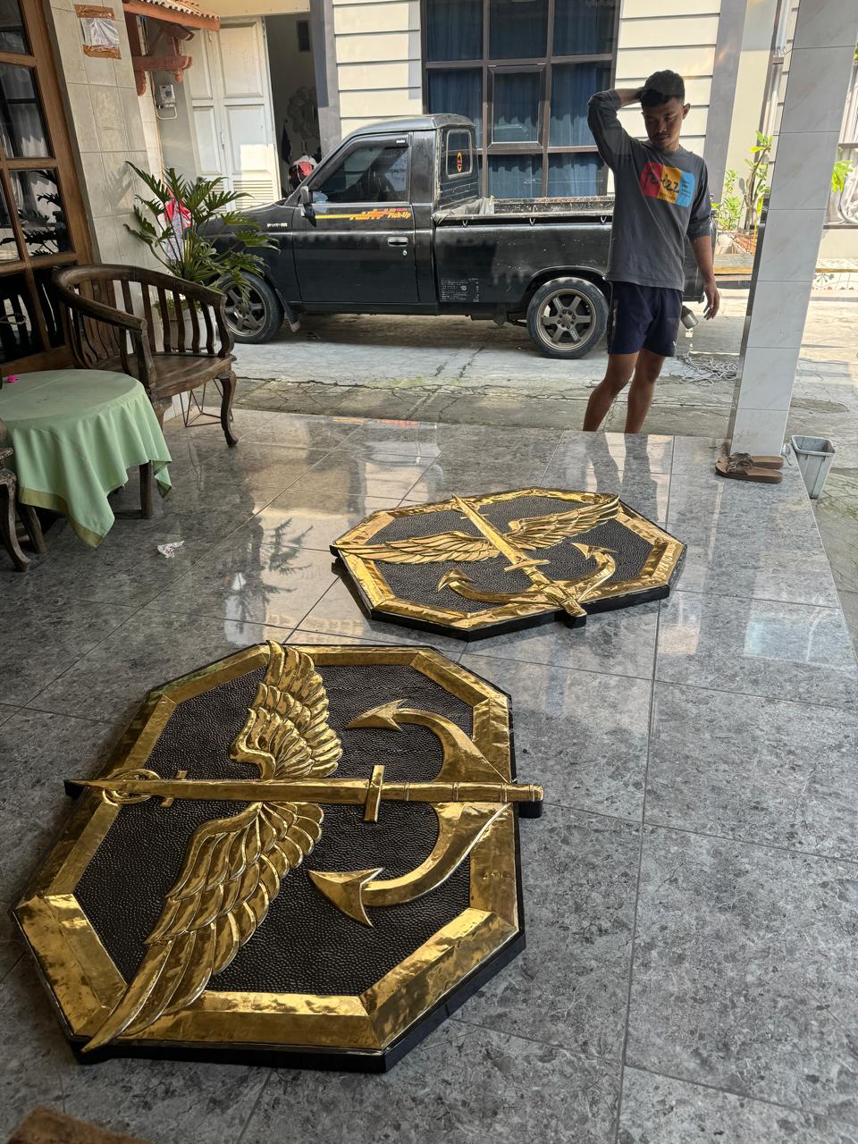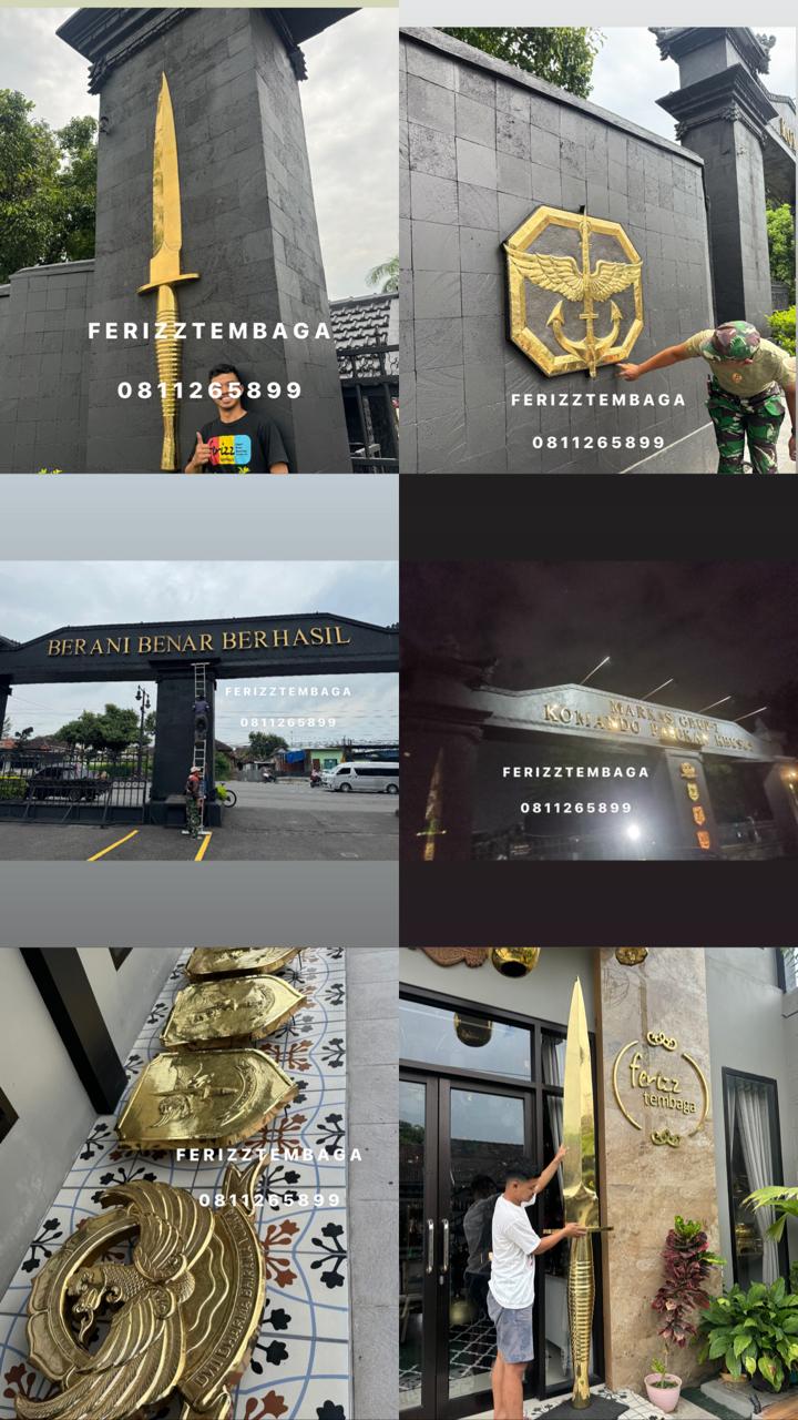 Produkkuningan.com kembali dipercaya untuk proyek eksklusif pengerjaan logo dan tulisan Grup 2 Kopassus. Kami menghadirkan produk kerajinan logam berkualitas tinggi dengan bahan kuningan dan tembaga pilihan. Logo dan tulisan dikerjakan dengan detail tinggi, mencerminkan semangat dan kehormatan satuan elit TNI AD. Pengerjaan menggunakan teknik pahat dan ukir tradisional yang presisi. Kami memastikan setiap lekuk logo dan huruf terlihat tegas dan mewah. Produk ini dirancang tahan lama, cocok untuk dipajang di markas atau ruang kehormatan. Warna emas alami dari kuningan memberi kesan gagah dan elegan. Logo Kopassus dari kuningan ini dibuat dengan ukuran yang dapat disesuaikan sesuai permintaan. Tim pengrajin kami berpengalaman dalam proyek militer dan instansi resmi. Setiap proses dilakukan secara manual untuk menjaga nilai seni dan keaslian.